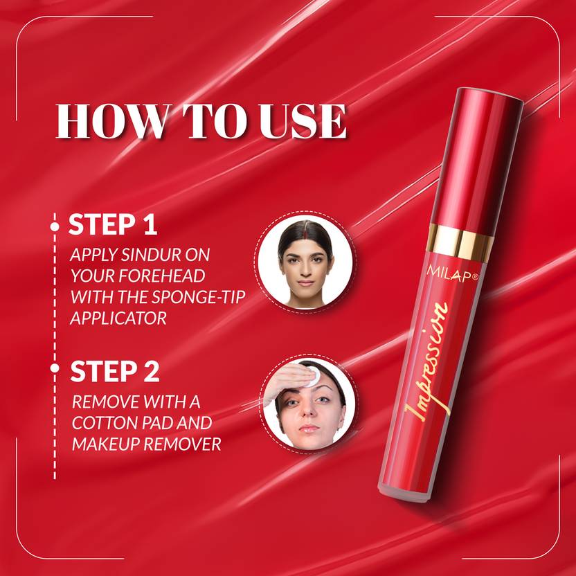 Liquid Sindoor Waterproof Red – Shake well before use. Using the applicator, apply a small amount to the hair parting or forehead. Allow to dry for a few seconds before touching.