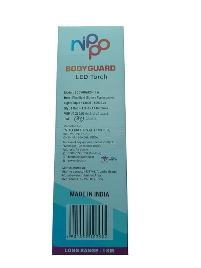 Light up your world with the Nippo Bodyguard 1W LED Torch, a powerful, reliable, and long-range flashlight built for safety, security, and everyday convenience. Engineered with a 1W high-efficiency LED, this torch throws a strong beam up to 1 kilometer, making it ideal for use at home, during power cuts, while camping, or for outdoor security.