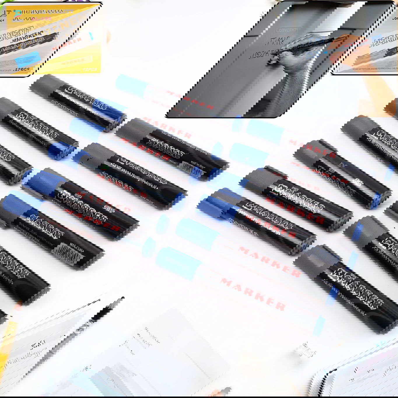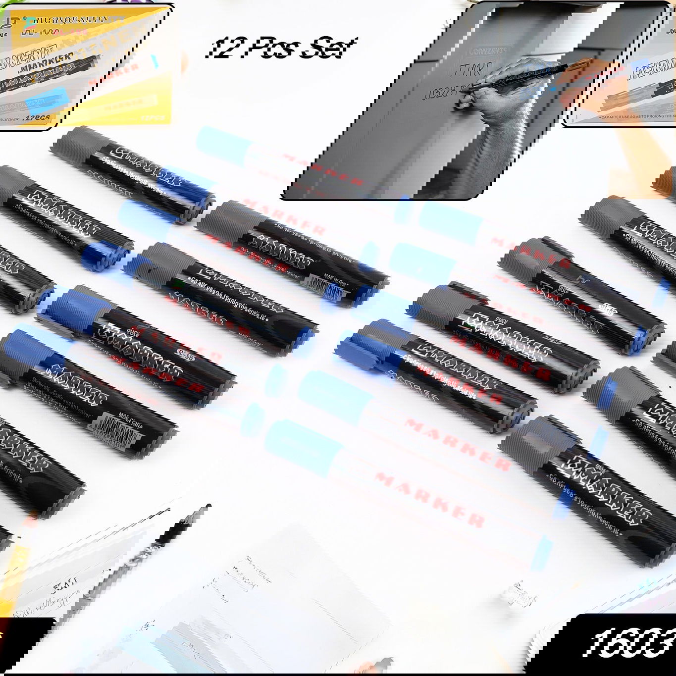 The Premium Permanent Blue Marker Pen Set (12 Pc) is the ultimate solution for professionals, students, and creative users who demand reliable, bold markings. Featuring waterproof and fade-resistant ink, this set ensures durability across surfaces like cardboard, metal, wood, and plastic.