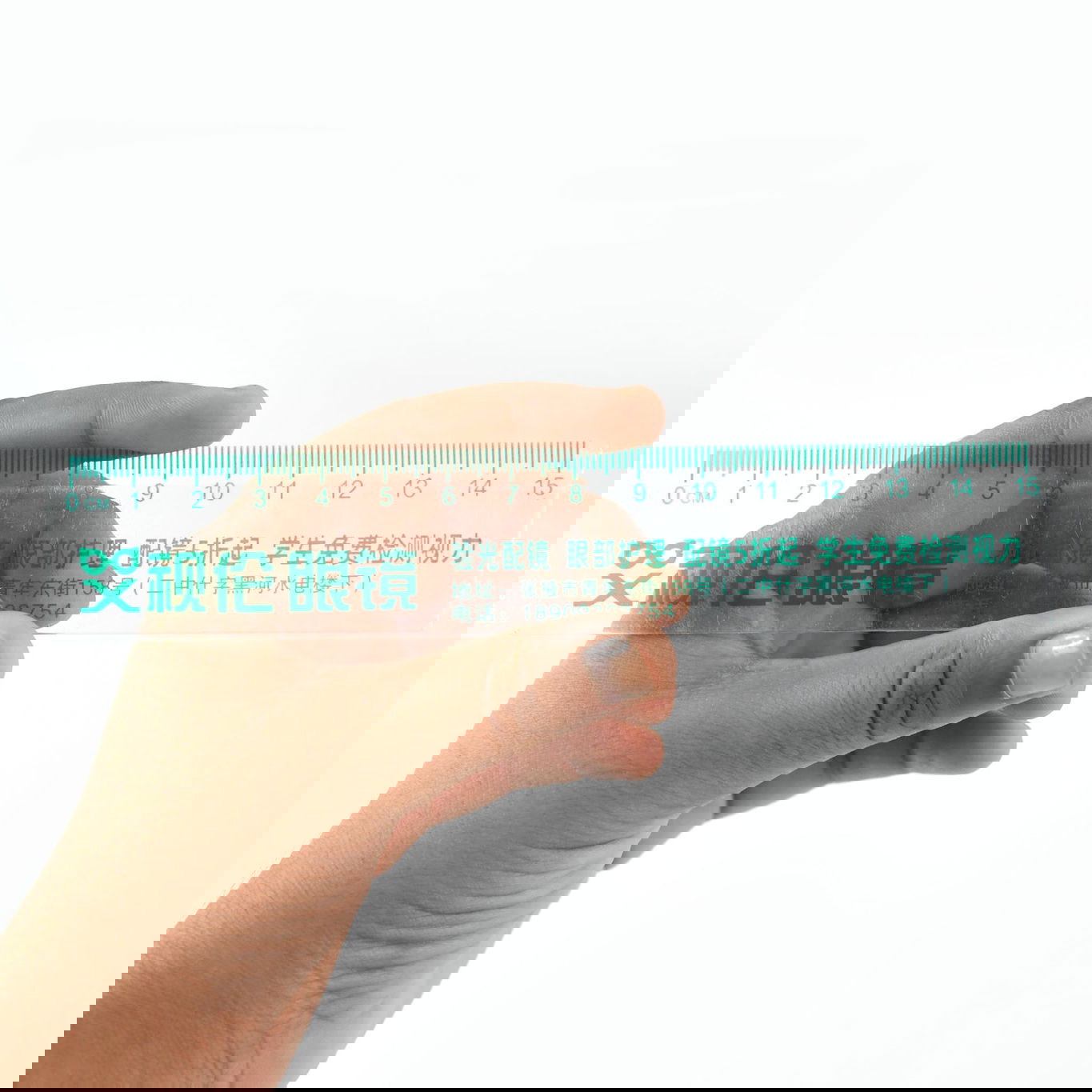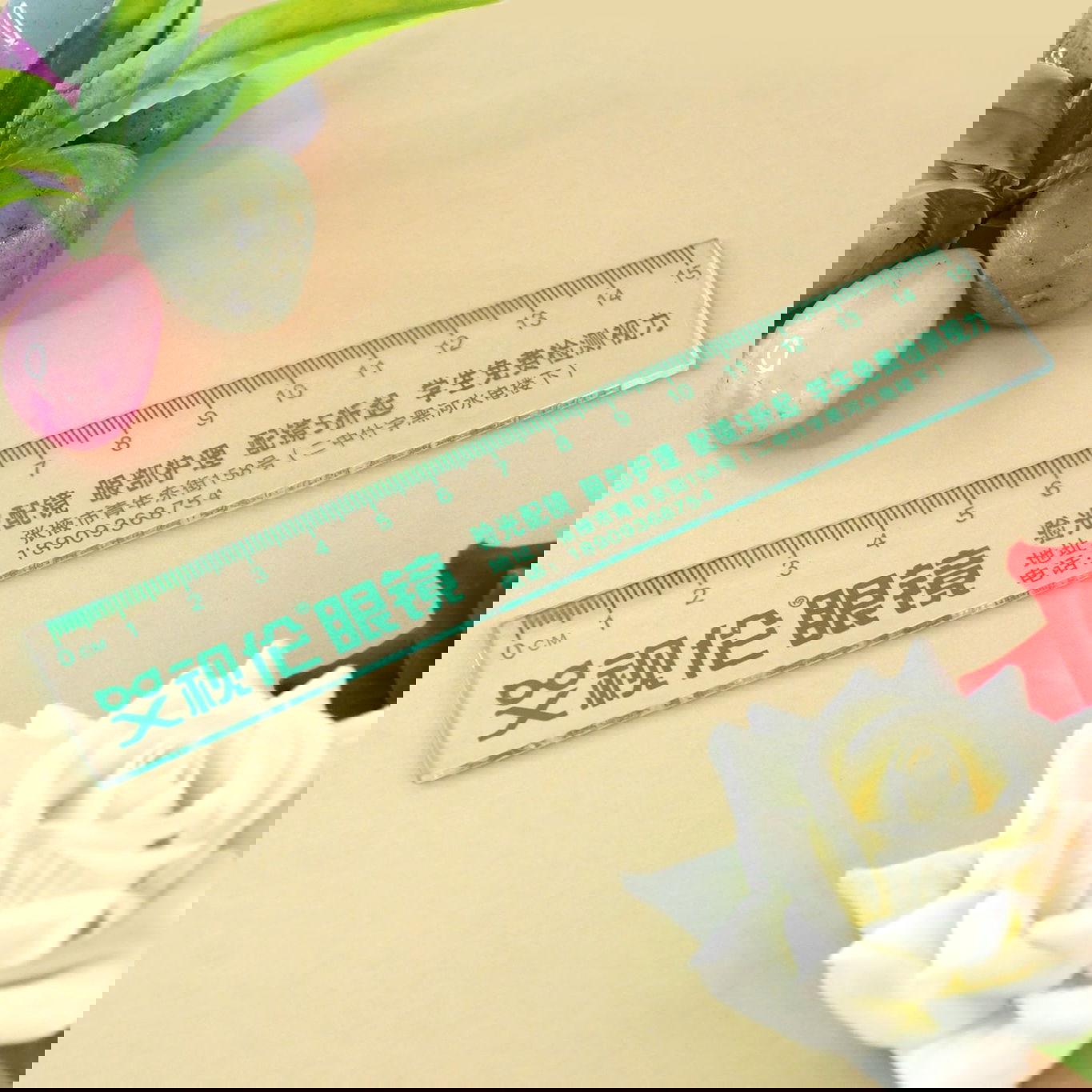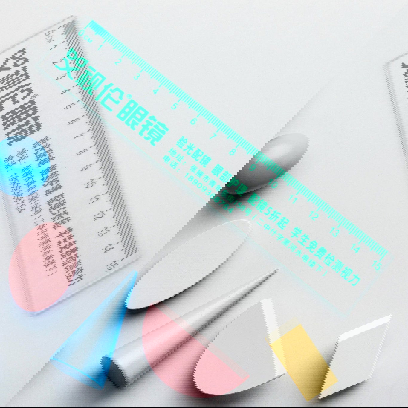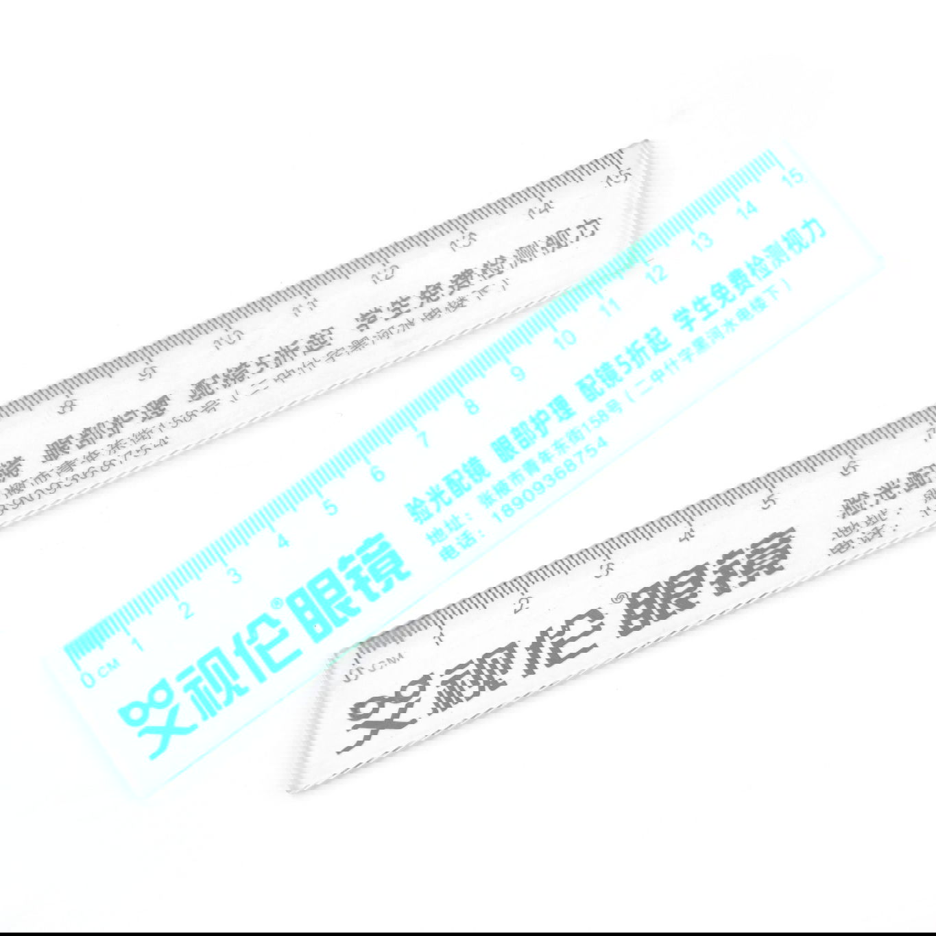 15cm Transparent Ruler: Clear plastic with green printed Chinese characters.