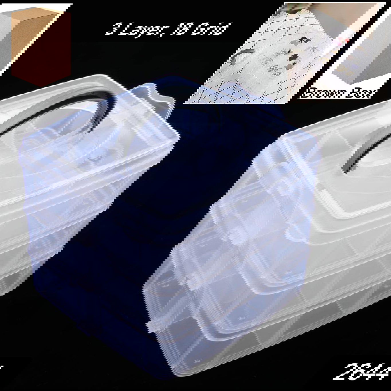 1 x 3-Tier 18 Sections Transparent Stackable Adjustable Compartment Craft Storage Box